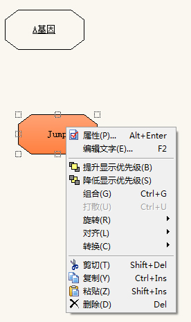 5.图形编辑,右键点击图形,选择“属性”,即可对图形格式进行编辑,主要有大小,背景颜色,填充等