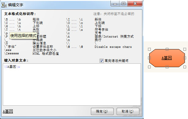 4.文字编辑,双击图形,弹出文字编辑框。下方空白区域输入文字,选中后点击上方的格式,确定后即可对文字进行相应的样式更改。