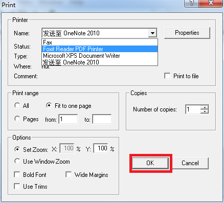 2.转换成PDF格式。File--Print打开打印预览,下拉菜单选择Foxit Reader PDF Printer(或其它PDF阅读器)