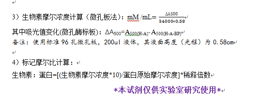 生物素摩尔浓度计算:mM /mL=0.396/(34000*1)=1.16*10-5